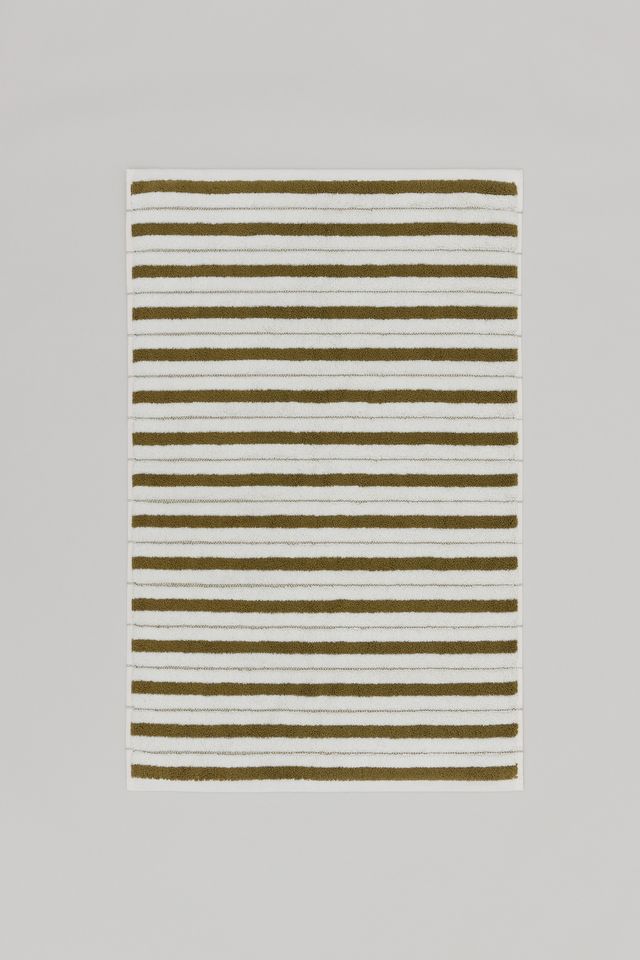 100% Organic Cotton bath mat with a luxuriously soft underfoot. Referencing the eclectic interiors in places of retreat, the design is inspired by the Lake House. A place where one disconnects and finds solitude. Defined by the pairing of a classic stripe, and embroidered gridded check, the ECHO colour way is fresh, while conjuring familiarity in the bathroom space.