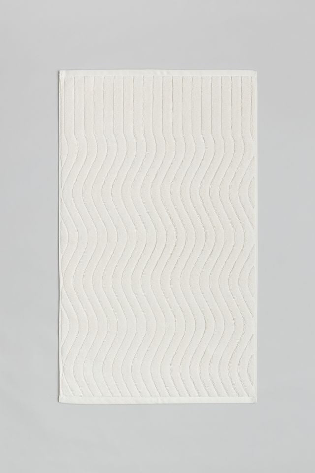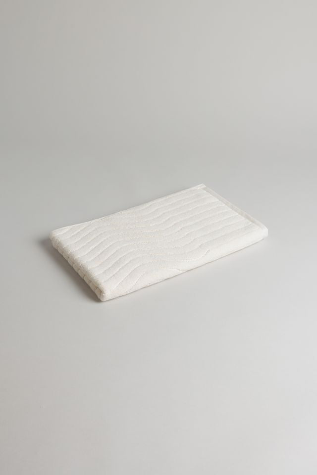 100% Organic Cotton bath mat. A wiggle ribbed texture, inspired by reverberations of skimmed water, repetitive and calming design that fits the need of a minimalist. Pairs well with ST CLAIR bath towel.