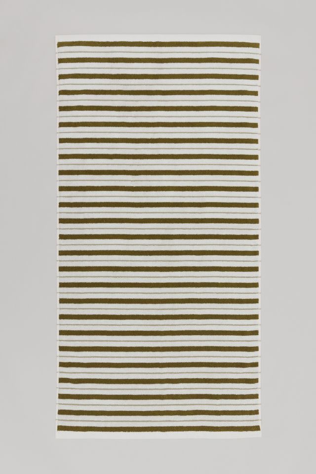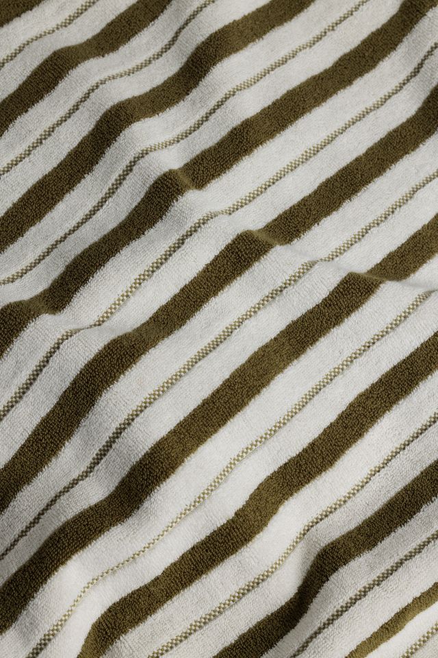 100% Organic Cotton bath towel with a luxuriously soft handle. Referencing the eclectic interiors in places of retreat, the design is inspired by the Lake House. A place where one disconnects and finds solitude. Defined by the pairing of a classic stripe, and embroidered gridded check, the FRANKLIN colour way is fresh, while conjuring familiarity in the bathroom space.