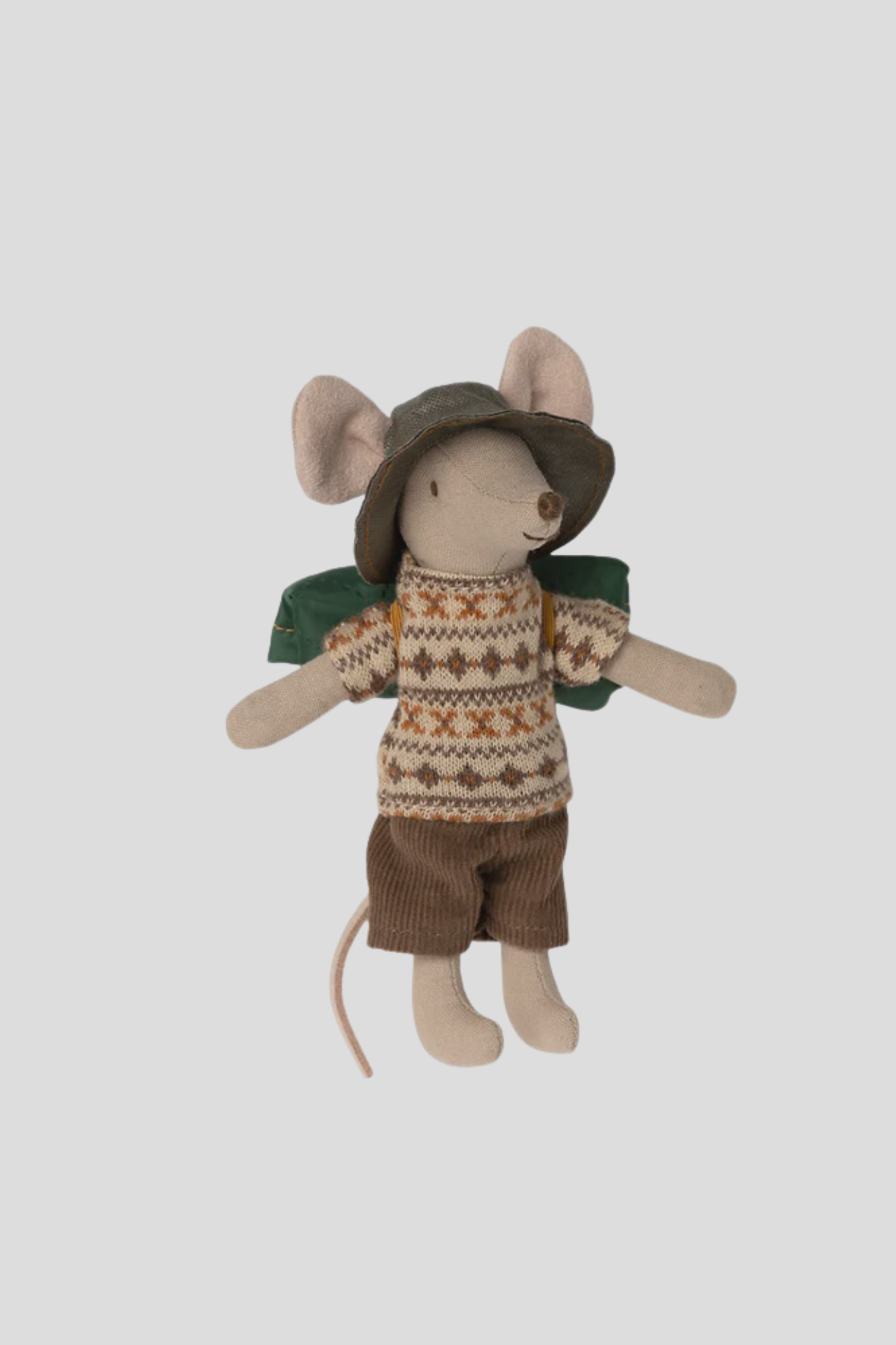 This Hiker Mouse is well prepared for a trip into the wilderness. He is dressed for days of walking and brings his sleeping bag for nights under the stars. Measures 13cm in length. This mouse also has magnets in his hands. Add more accessories from the hiker collection for more play.
