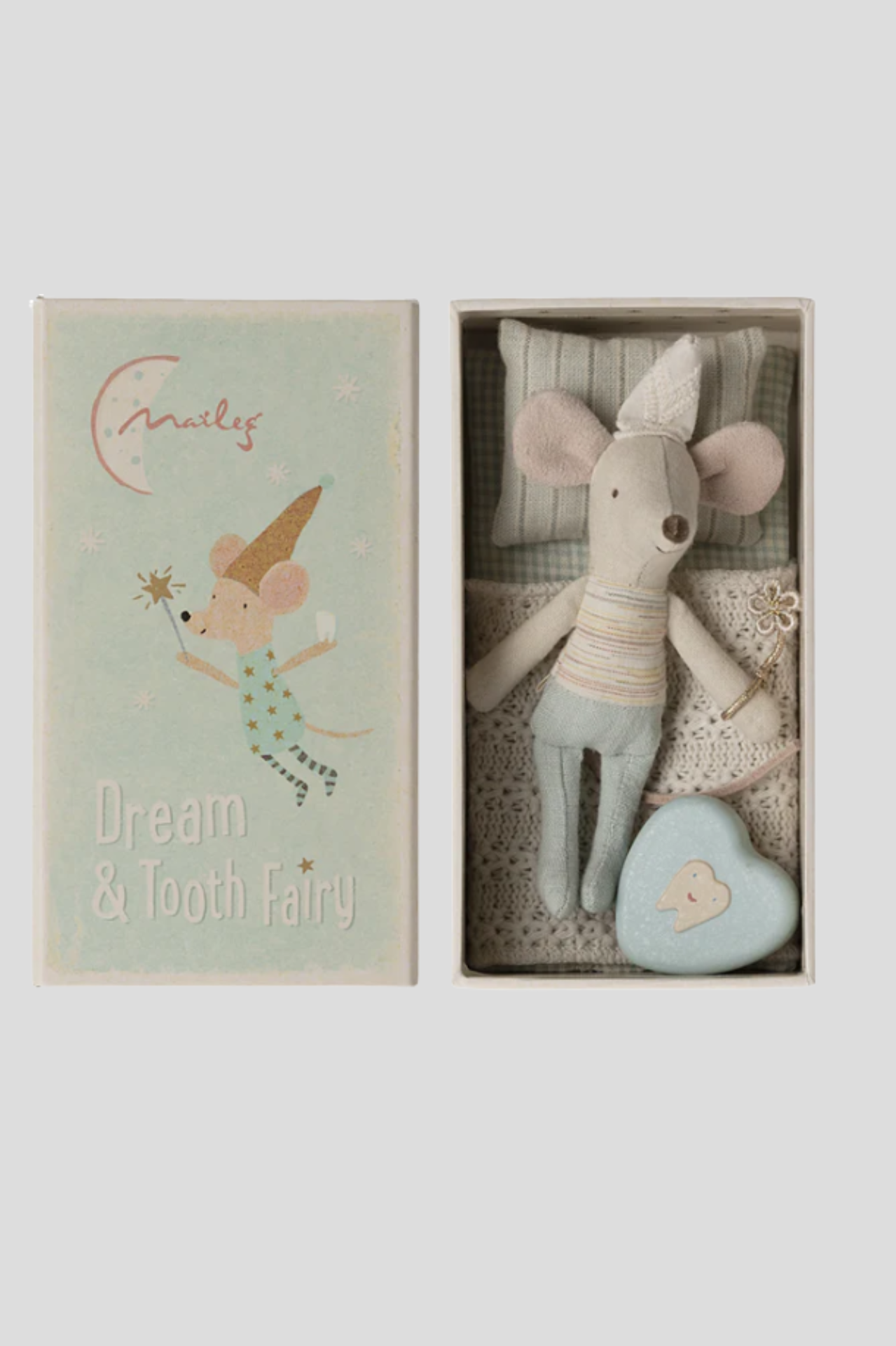 At night, the tooth fairy spreads fairy dust, collects teeth, brings treats and makes sure you have sweet dreams. Dressed magically and sleeps tight in soft bedlinen - includes tooth box and matchbox. Measures 11cm in length.