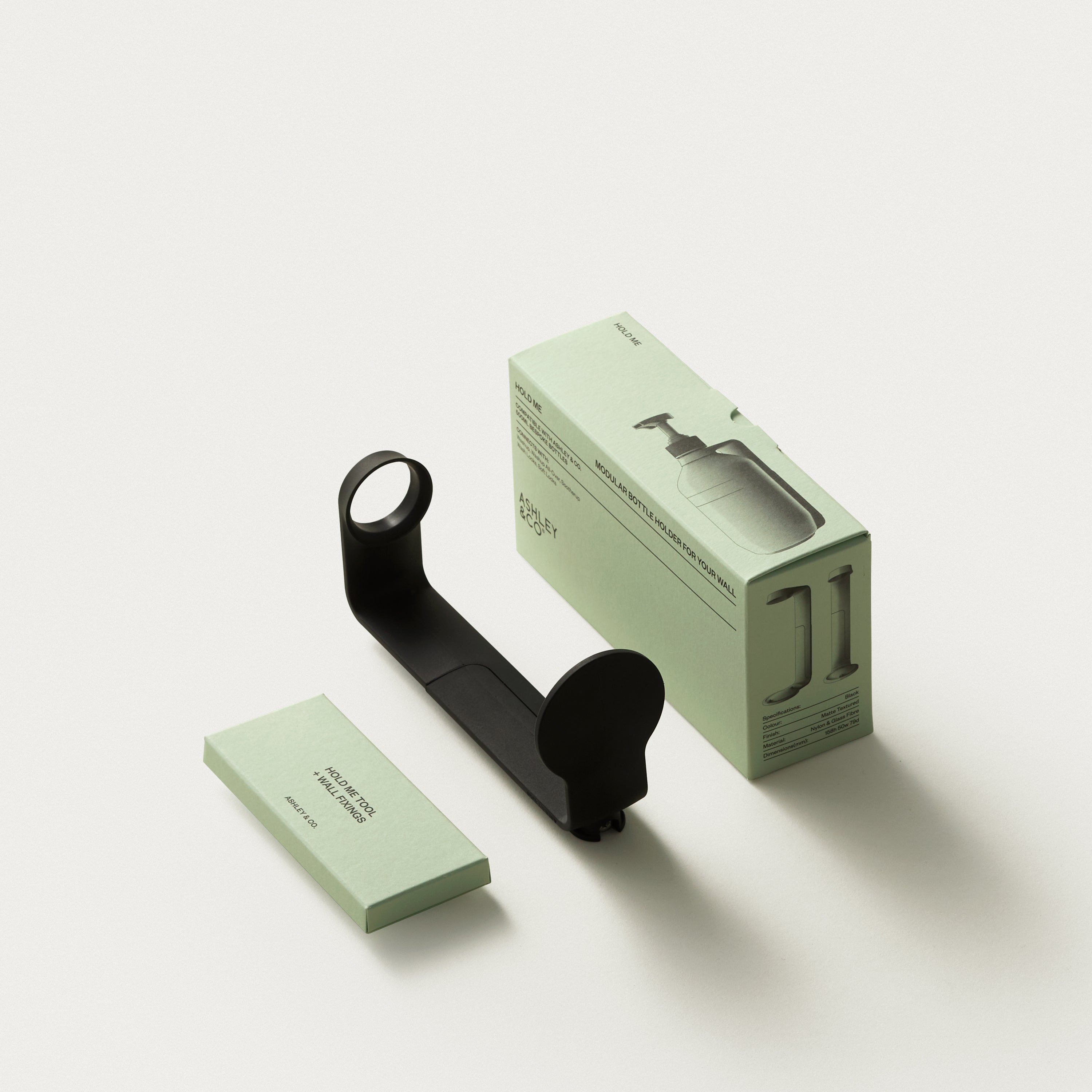 Fix & perch one or partner-up two, Hold Me is a modular wall-mounted storage solution designed solely for use with all Ashley & Co® 500ml Wash, Body and Hair products. Unobtrusive yet essential to keeping well used spaces open & organised, Hold Me tenderly cradles your Ashley & Co® favourites. By caring for your bottles, wear & tear is reduced and refilling is a breeze. By reducing single-use packaging, we all win.