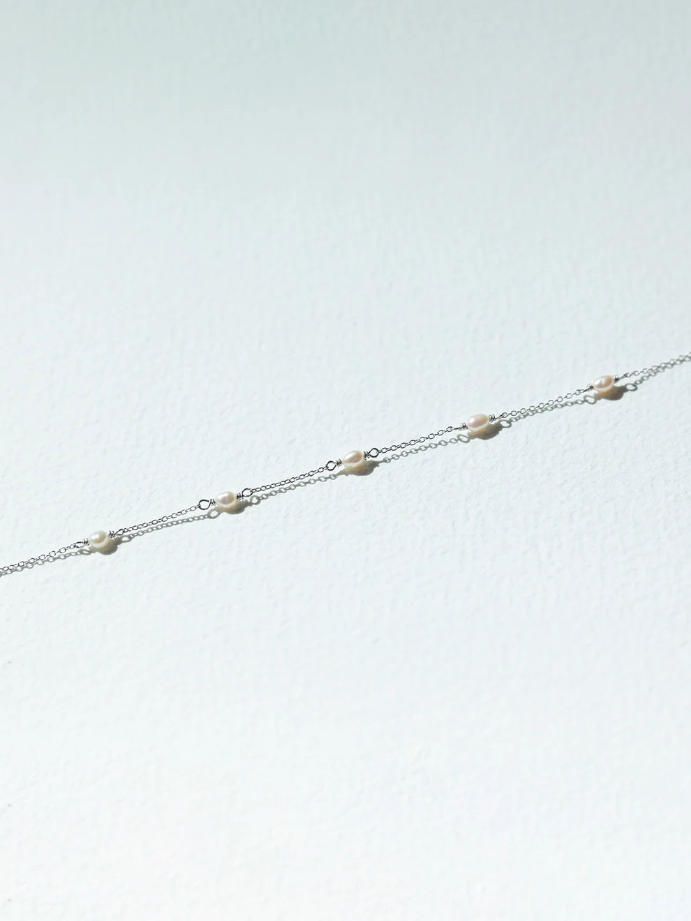 A fine chain spaced with freshwater pearls - timeless & sweet.