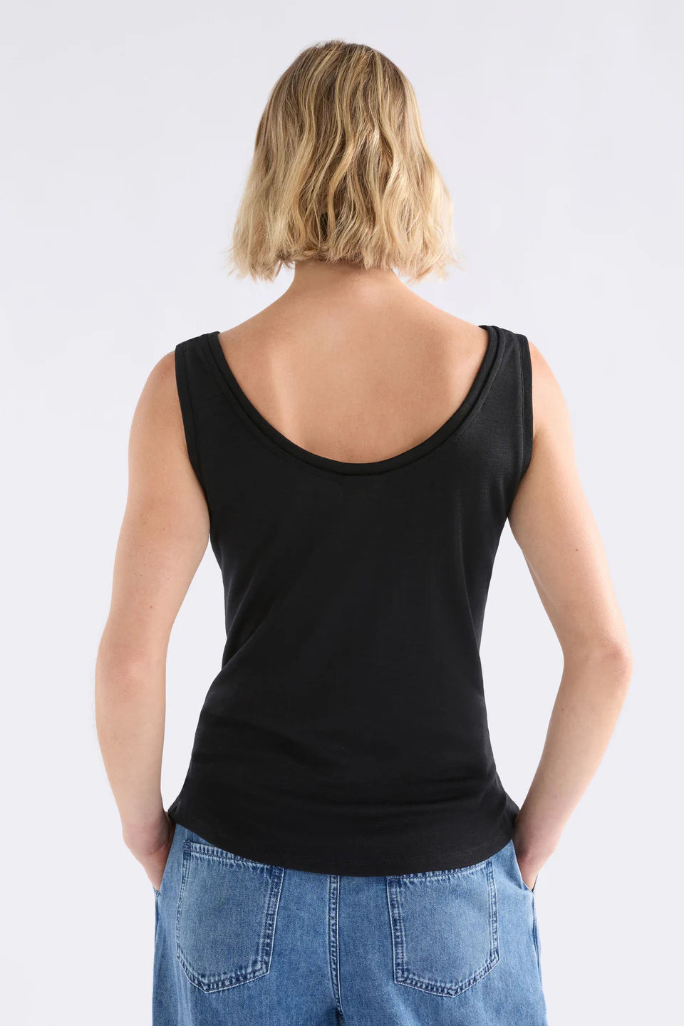 The Merino Wool Tank is a versatile layering piece crafted from a soft, extra-fine merino wool. A contour fit, knitted tank with a scoop neckline, wide sleeveless design that is long enough to tuck into trousers and skirts. The lightweight merino wool is breathable and temperature regulating, keeping you warm in winter and cool in summer. The perfect piece when you want an extra layer of warmth without adding bulk.