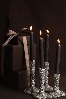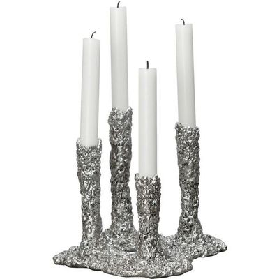Space Candlestick from ByOn. The surface of this 4-armed candlestick looks like molten tin, with deisgn inspiration taken from outer space. The perfect addition to your tablescape. Candles not included.