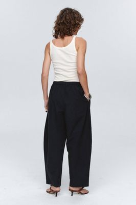 The Ellidy Pant are crafted in a crisp 100% cotton. They feature a simple silhouette, with a slight curved shape through the leg, falling to an ankle length. These pants sit on an elasticated waistband and feature pockets on the side, accentuated with exposed seams.