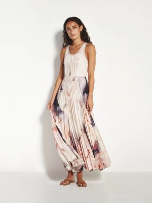 The Lillian Pleat Dress is a pleated style dress with a singlet bodice and A-line skirt. Elasticated at the waist, the Lillian can be dressed up for a special occasion or paired with sandals for a more relaxed summer look.