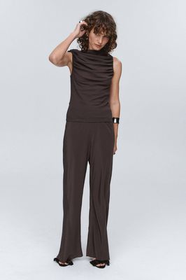 A refined take on the sleeveless top, the Risa Singlet is crafted from a soft stretch 100% Cotton jersey. Featuring an artfully draped neckline and armhole at the front and back that creates soft folds, adding quiet structure to an otherwise pared-back shape. Cut close through the body for a clean fit, it balances elegance with simplicity. A versatile base layer or stand-alone piece with a sculptural edge.