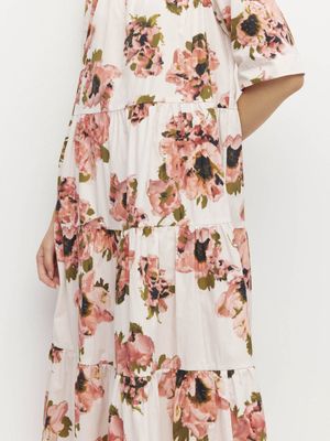 A classic JH style, the Forever Tunic is a midi tiered dress in cool easy-care 100% Cotton. This JH custom print design, Ruffled Tulips, is perfectly paired with sandals for the day, or with heels for the evening.