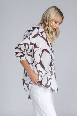 Blak Charlotte Top - Chocolate w Ivory Floral Print