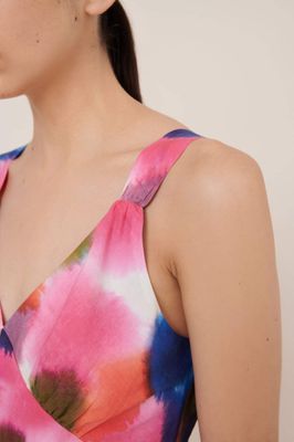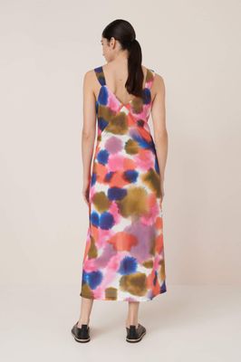 The Fluidity Dress embodies elegance with a beautifully cut, fitted silhouette, featuring a flattering v-neckline and midi-length hem. Made from soft organic cotton voile, this dress showcases our hand-painted watercolour print. Designed with a standard fit, it includes a front split for added ease and movement. A perfect occasion-wear style. All Fairtrade organic cotton. All plastic-free.