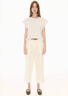 Made from cotton jersey, the Orlo Frill Sleeve Tee features a knitted frill detail on the sleeve with metallic highlights.