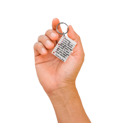 Kit includes: Blank shrinkable lined letter, permanent marker pen, split rings and an instruction sheet for making 1 keyring