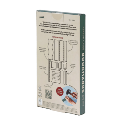 This kit includes everything you need to create one-of-a-kind bookmarks by stamping quotes from your favourite book, special dates or the name of a loved one.