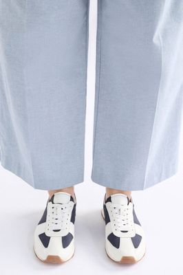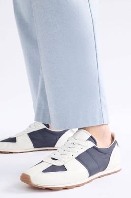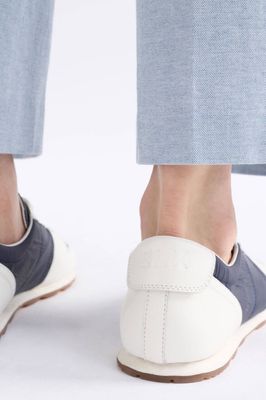 The Olbben Trainer is a lightweight and slim trainer style crafted from a navy recycled nylon upper and contrasting white leather trim – a streamlined design with maximum impact. Featuring internal padding and soft upper for all-day comfort, the neutral colourway provides styling versatility, perfectly pairing with your everyday jeans and tees to jersey dress looks.