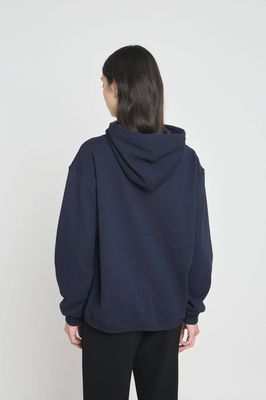 No regrets with this cosy cotton fleece hoodie in our favourite colour - navy. Made and embroidered in Newtown, Wellington.