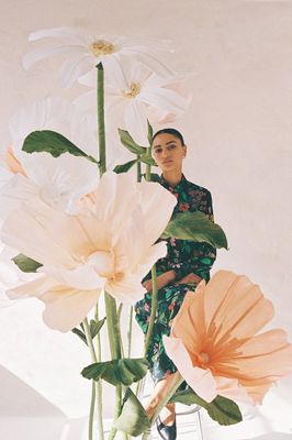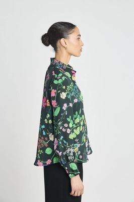 At one with nature: the Marigold shirt is a TSN classic, cut in custom print 100% silk crepe de chine. With long sleeves, an exaggerated pointed collar and gathered sleeve at cuff.