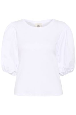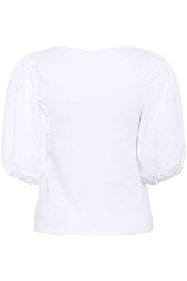 Women's top with regular fit combines soft stretch fabric and dramatic puff sleeves for contemporary elegance. Features a round neckline and short length for versatile styling and comfort.