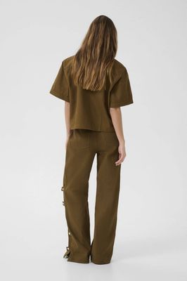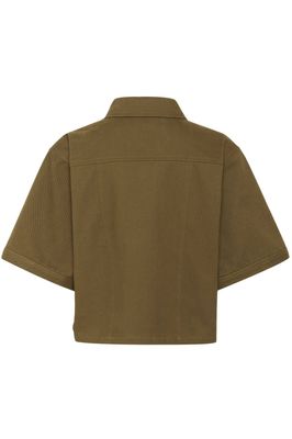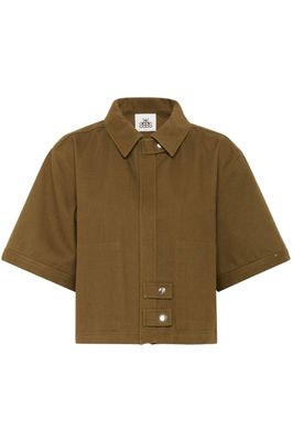 The Benedicte Shirt by Karen by Simonsen is a loose-fit, short-sleeved, button-up summer jacket made of 100% cotton. It features a turn-down collar, zip pockets, and a covered fastener.