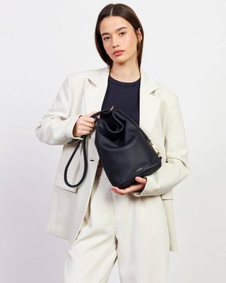 A sleek mid-sized bucket style bag; the smaller sister to our generous bucket tote June. Jojo delivers the same sophisticated functionality in a more compact form. Perfect for those who prefer to carry with intention rather than excess, while maintaining the effortless style transition from shoulder to crossbody wear. Simply unclip the signature SABEN hardware to transform it into a chic crossbody – versatility refined.