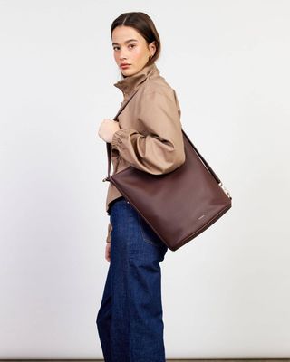 A chic bucket style tote designed for your everyday needs. June’s sleek, adjustable shoulder strap and a secure magnetic closure provides generous space for all your essentials – and then some. Simply unclip the statement SABEN hardware to extend the bag to a set length crossbody.