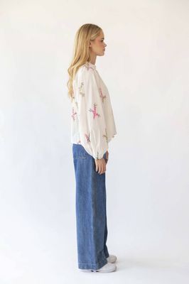 The Hailey shirt is a feminine and colorful style with delicate details. It’s made from light and soft cotton with an embroidered pattern in warm tones, creating a handcrafted and exclusive look. The relaxed fit with gentle gathers gives it a beautiful silhouette and effortless drape.