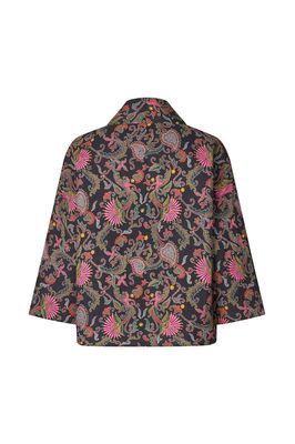 The Barbra jacket is a short, lightweight piece full of personality. Designed in a colorful paisley print on a dark base, it features an open front with no closure – perfect for layering. Made from 100% cotton, making it both light and comfortable to wear.