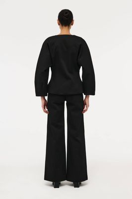 Each pattern piece has been expertly cut and tailored to enhance the cinched waist and batwing cut.