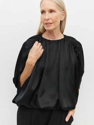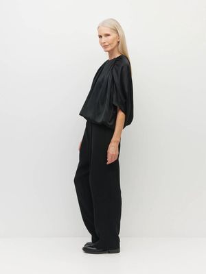 The new Una Top has a unique silhouette which showcases beautiful draping, leading into a blouson effect hem. Versatile in our Dress Satin, wear with the matching Koa Pant, denim, or suiting for a striking weekday outfit, or with a bias-cut skirt for a chic event ensemble.