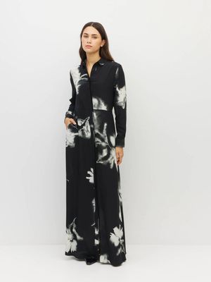 The Lisbeth Dress is an elegant floor-length shirtdress that falls beautifully in our original Inkflower Silk CDC. A comfortable yet stand-out style, adaptable for work, event, and weekend dressing.