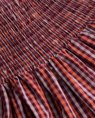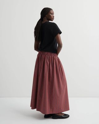 A full length skirt detailed with elastic shirring at the waist and inseam pockets for everyday ease. The elastic shirring gently shapes to your body, allowing a comfortable, relaxed fit. Crafted in organic cotton poplin in our playful Maroon Check. All Fairtrade organic cotton. All plastic-free.