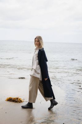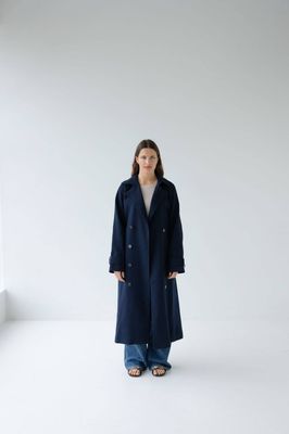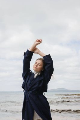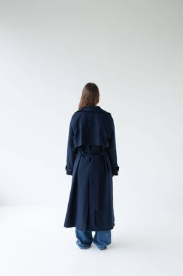 Effortlessly tailored with a relaxed drape. Double breasted, featuring a detachable waist tie, lapel button closure, sleeve strap & storm flap.